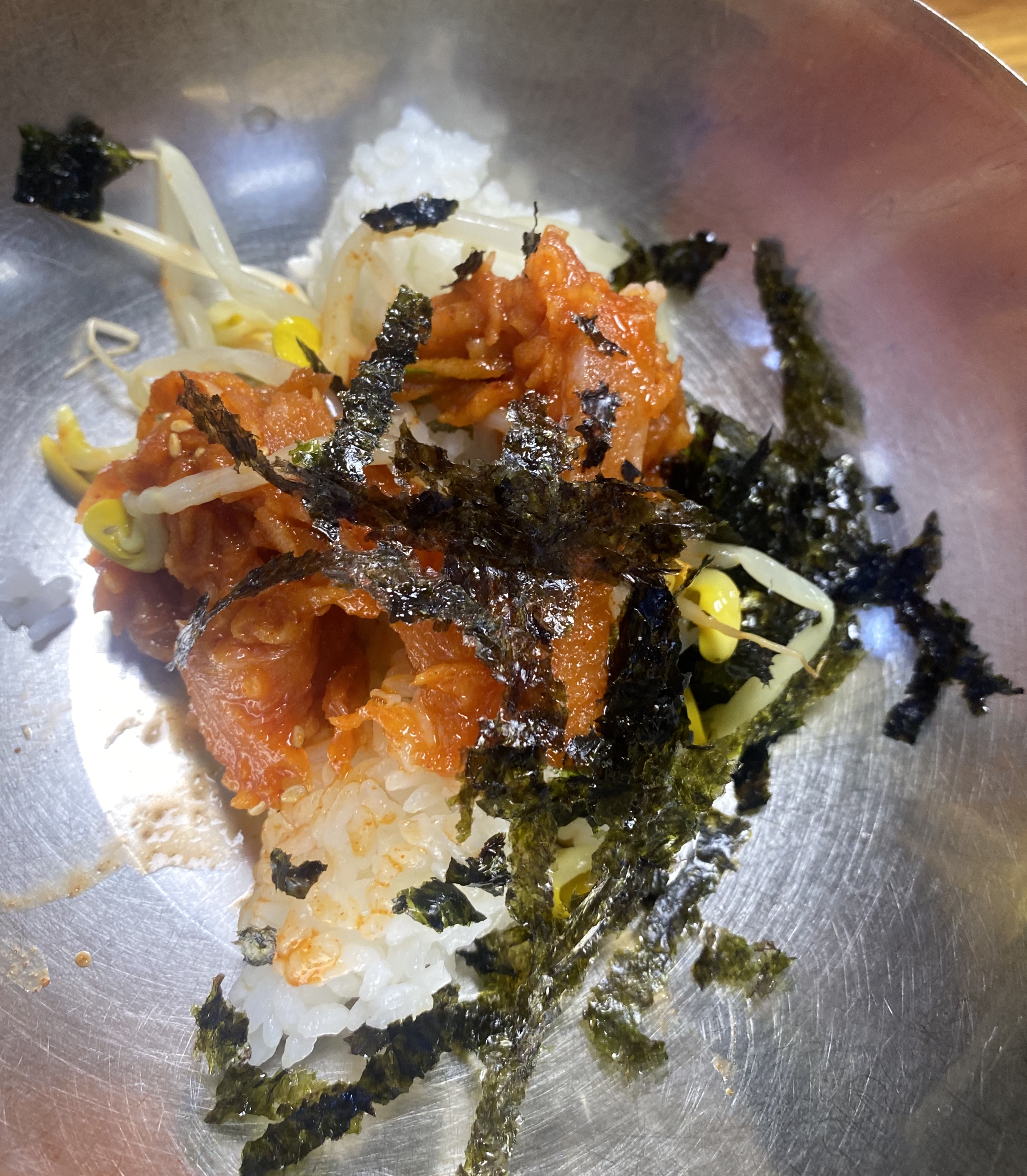 3)양푼에 서대회무침+김+콩나물무침 비벼서 먹어도 맛있어요!ㅎㅎㅎ