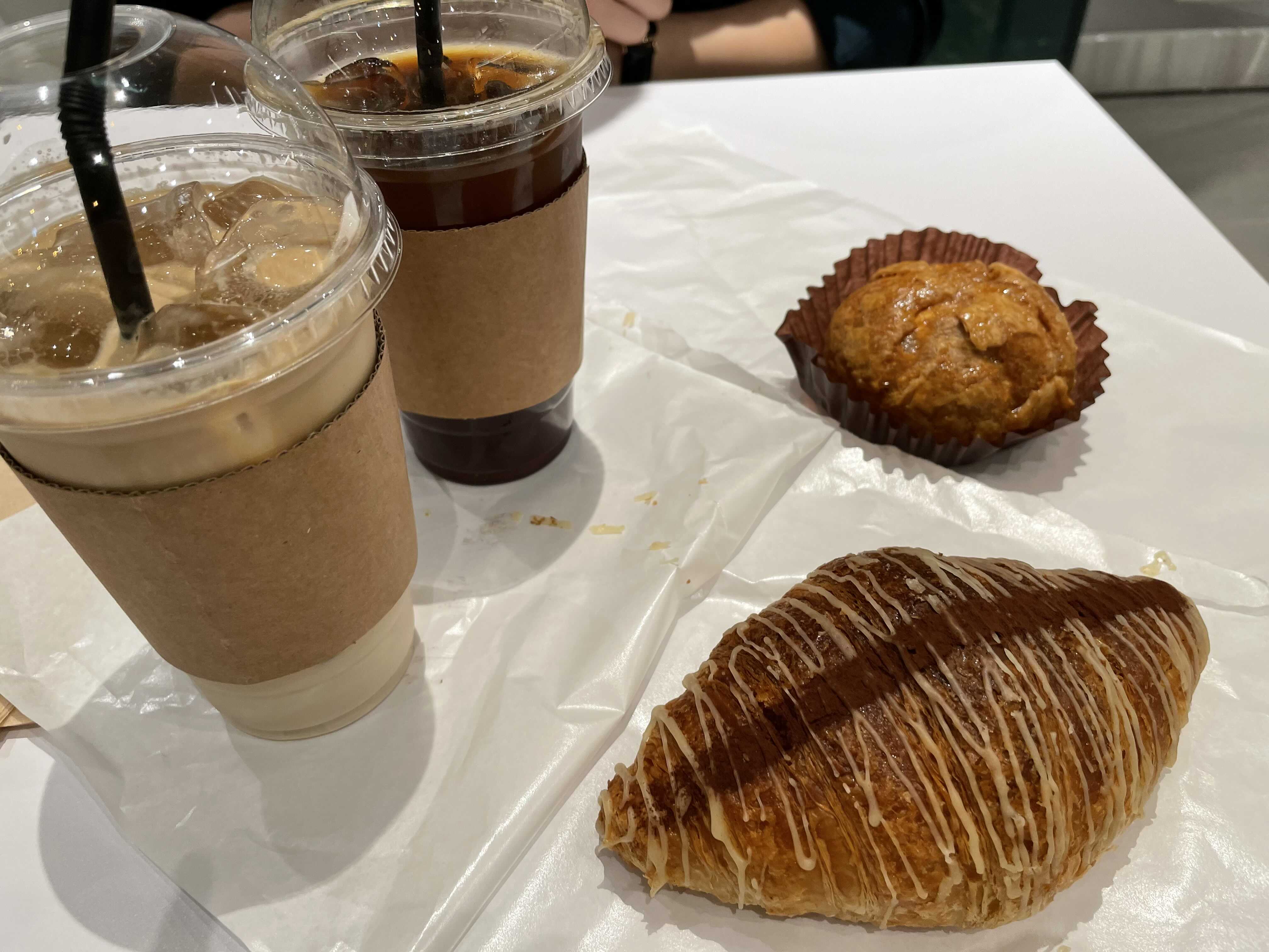저희는 아이스 카페라떼 / 아이스 아메리카노 / 밀푀유슈 / 마스카포네 크루아상 주문!