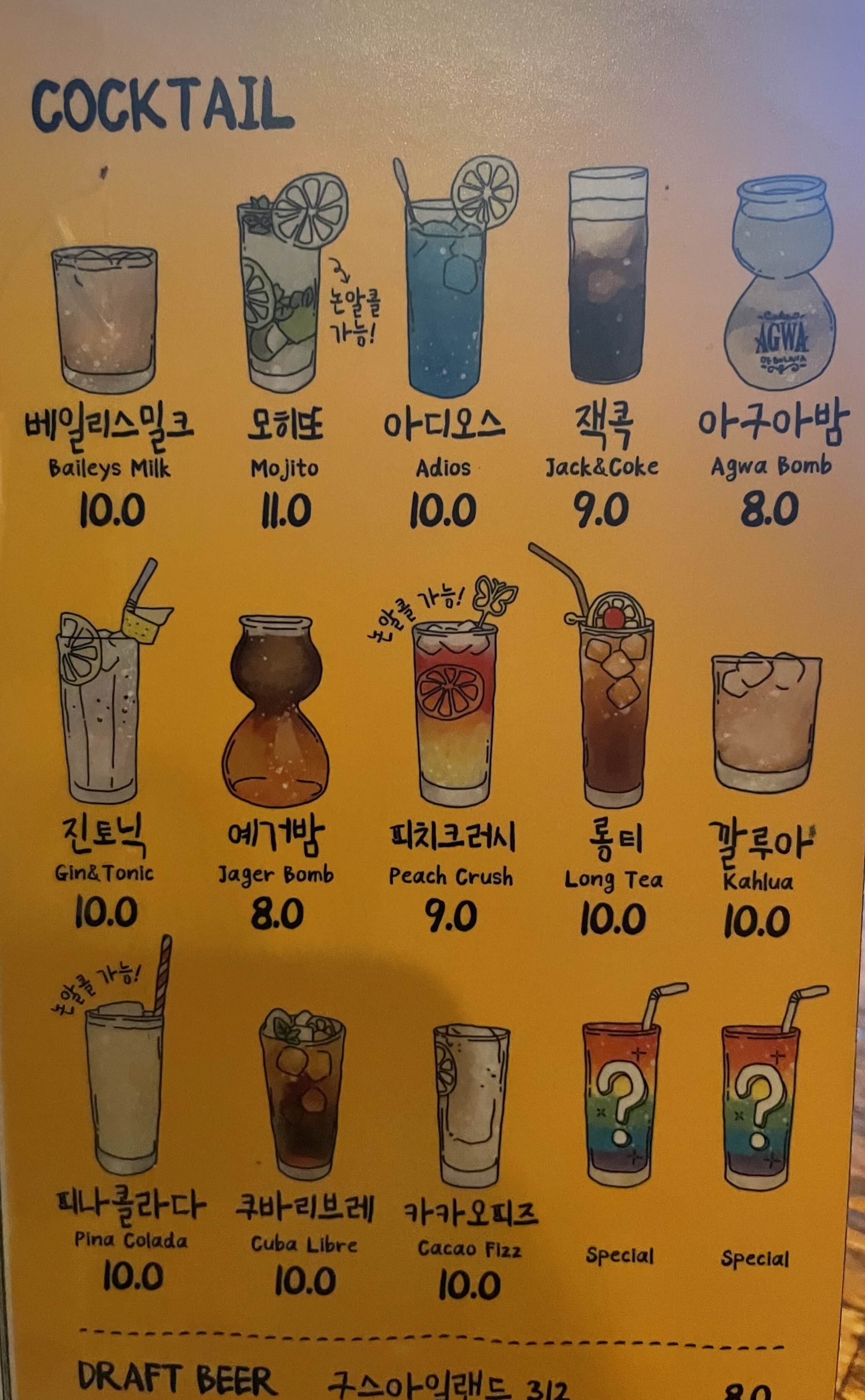 칵테일 종류가 다양해서 고르는 재미🤩