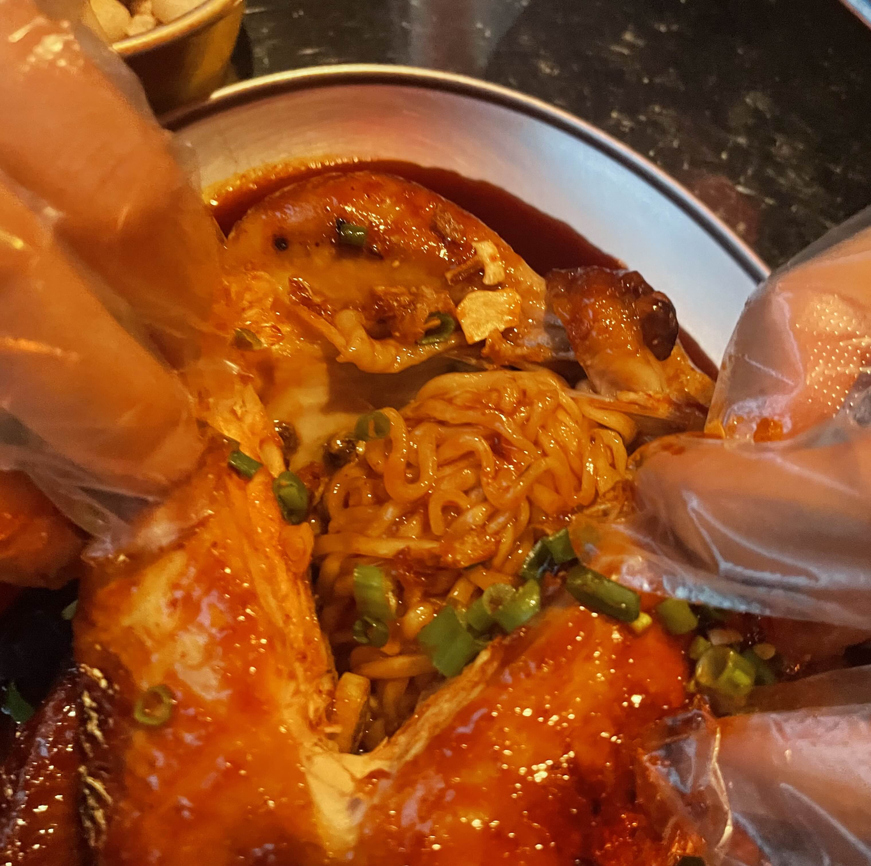 그리고 통닭 안에 이렇게 불닭볶음면이 들어가있어요~