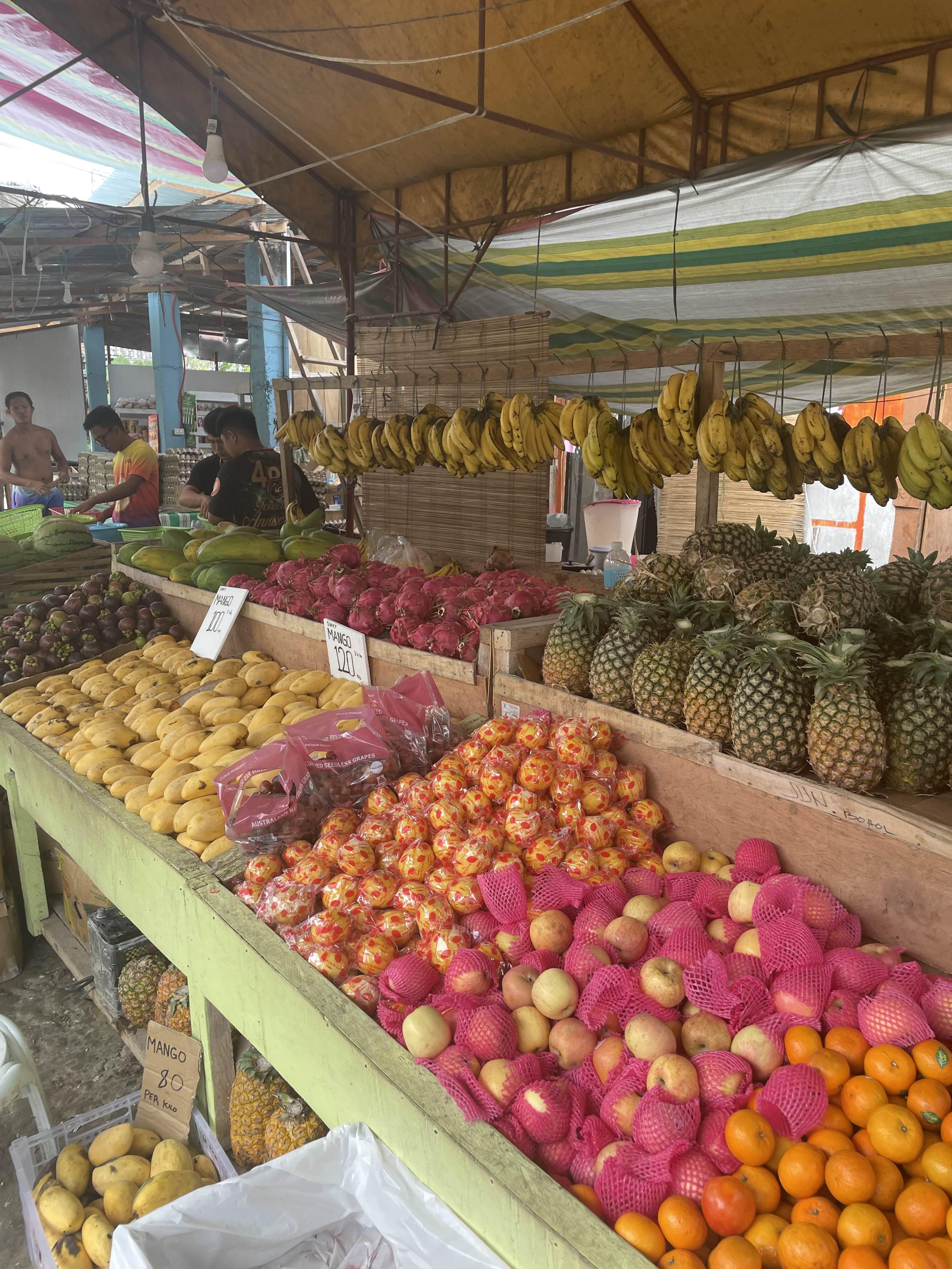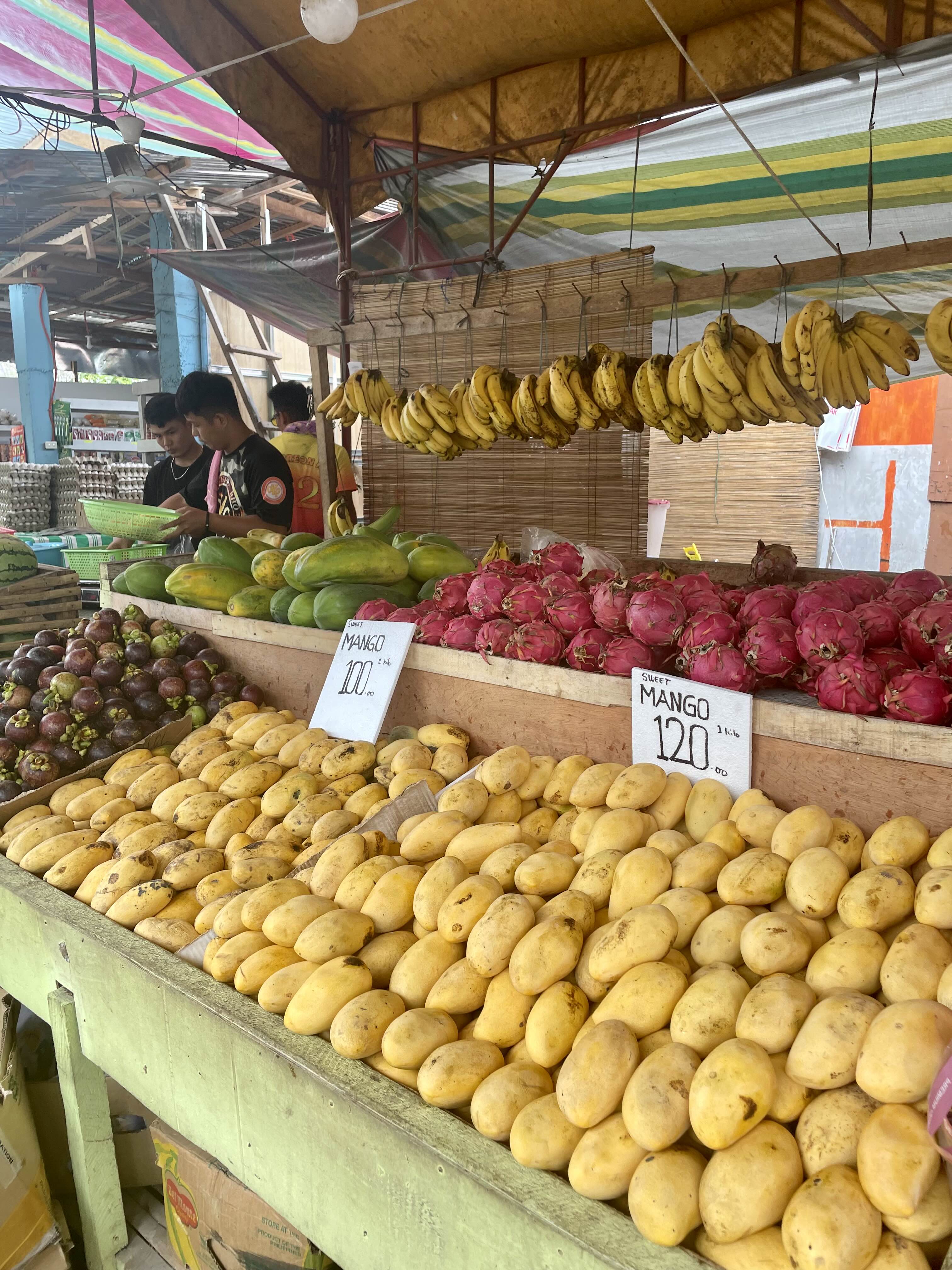 상처 난 망고는 키로당 100페소, 좀 더 깨끗한 망고는 120페소였어요.