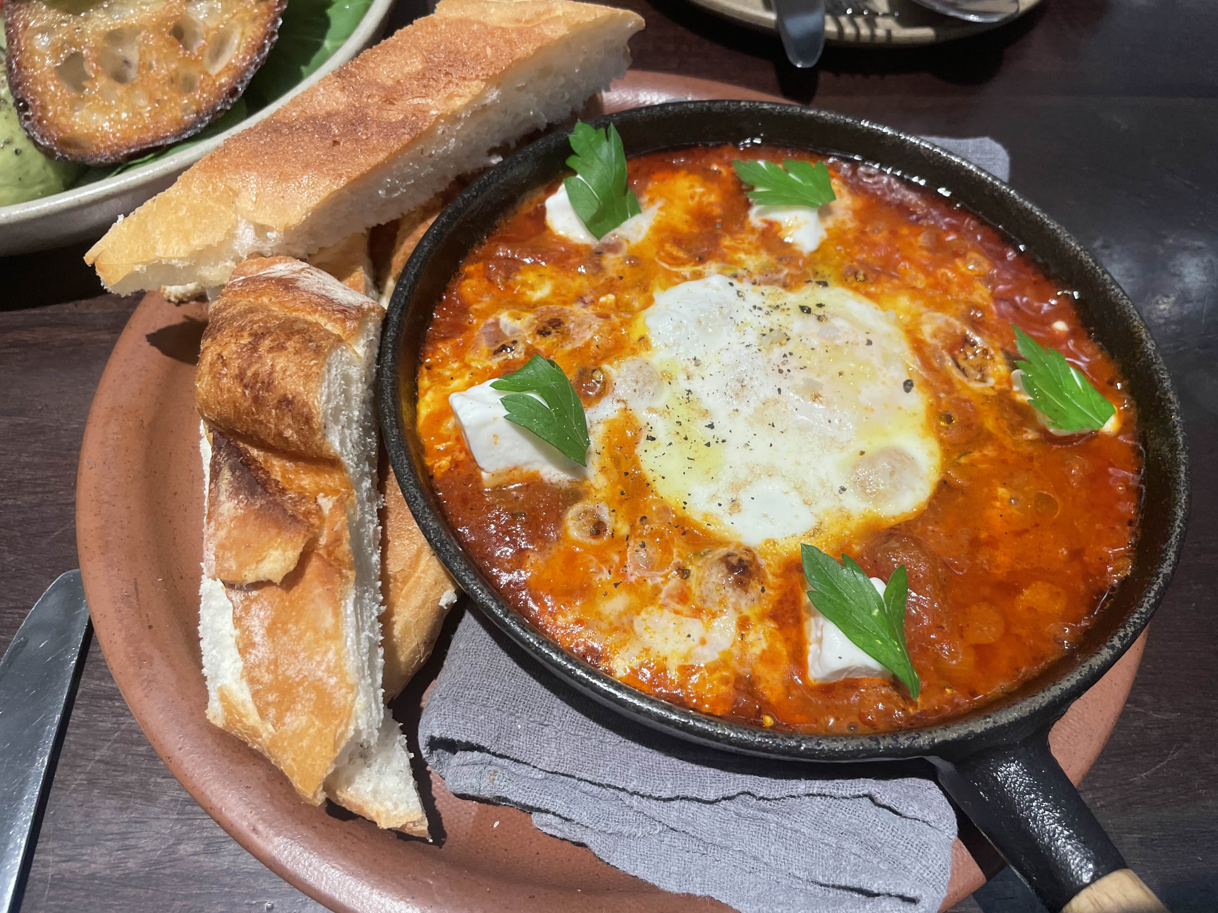 토마토소스와 각종 야채, 향신료를 첨가하여 만든 스튜에 데친 달걀을 첨가한 음식으로,