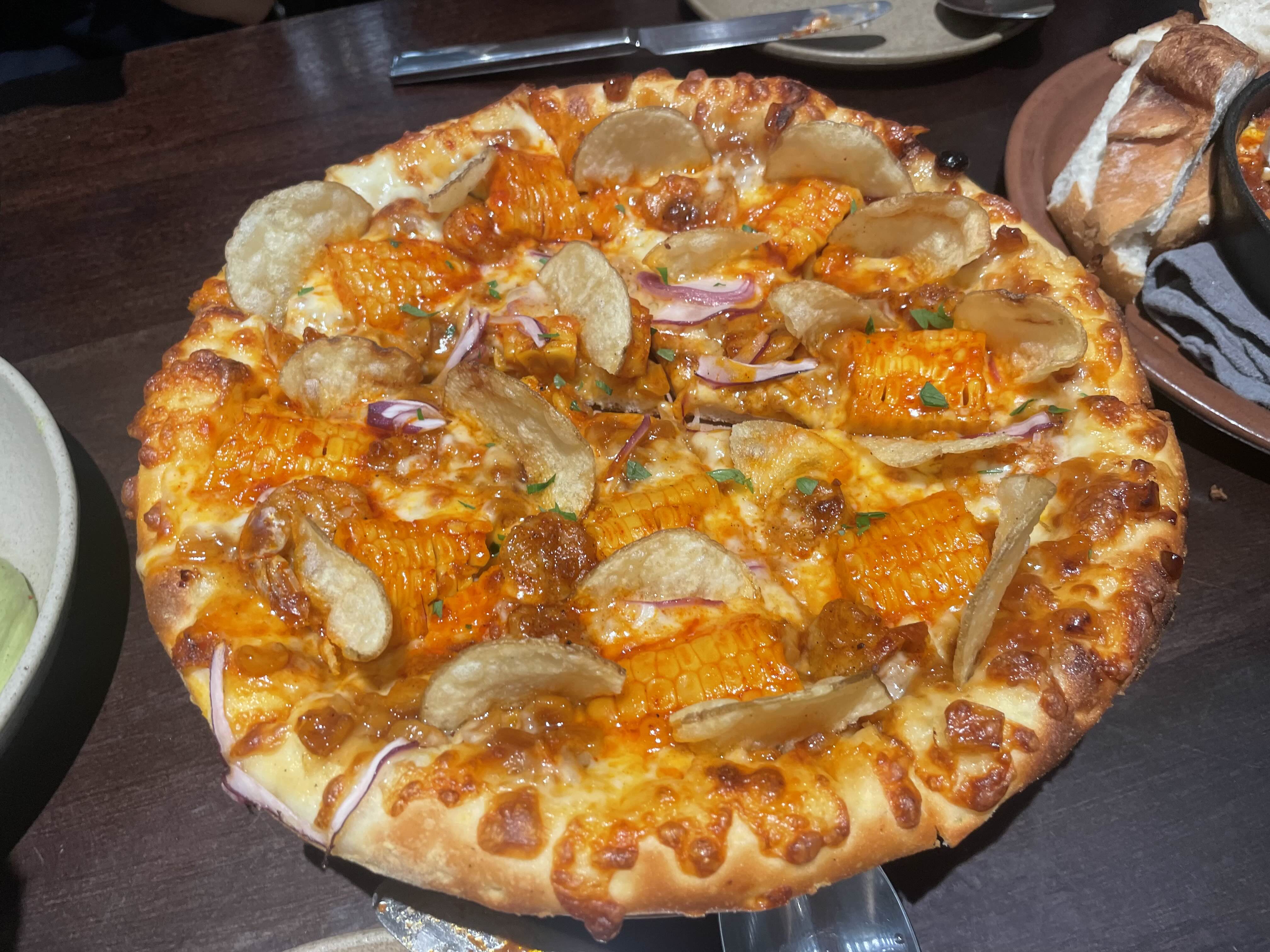 매콤 달콤 바삭한 메종 파이프 그라운드의 시그니처 메뉴, 옥수수 피자에요~~