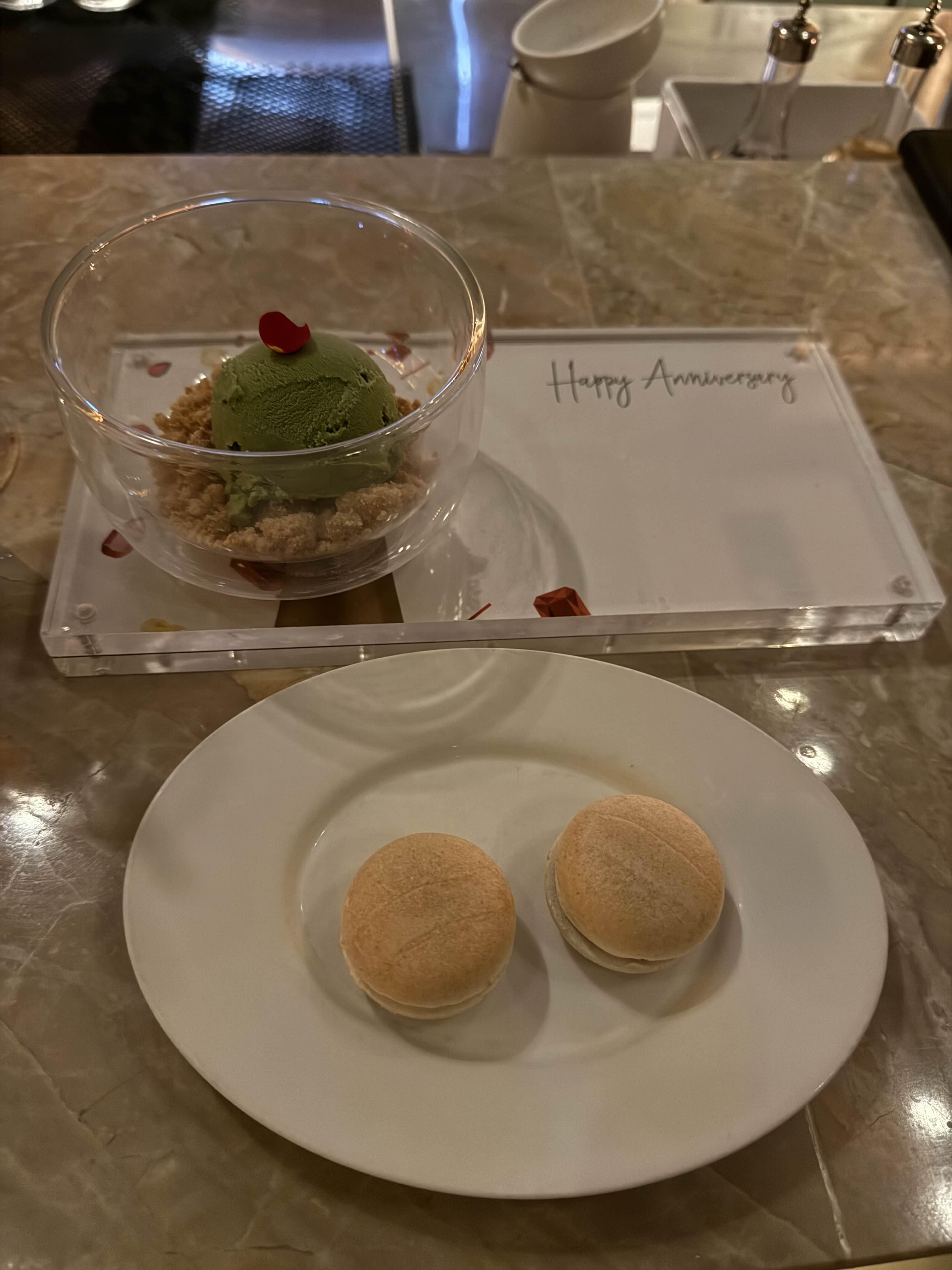 예약할때 기념일이라고 미리 알려드리면, 소보로가 뿌려진 말차 아이스크림을 주거든요.