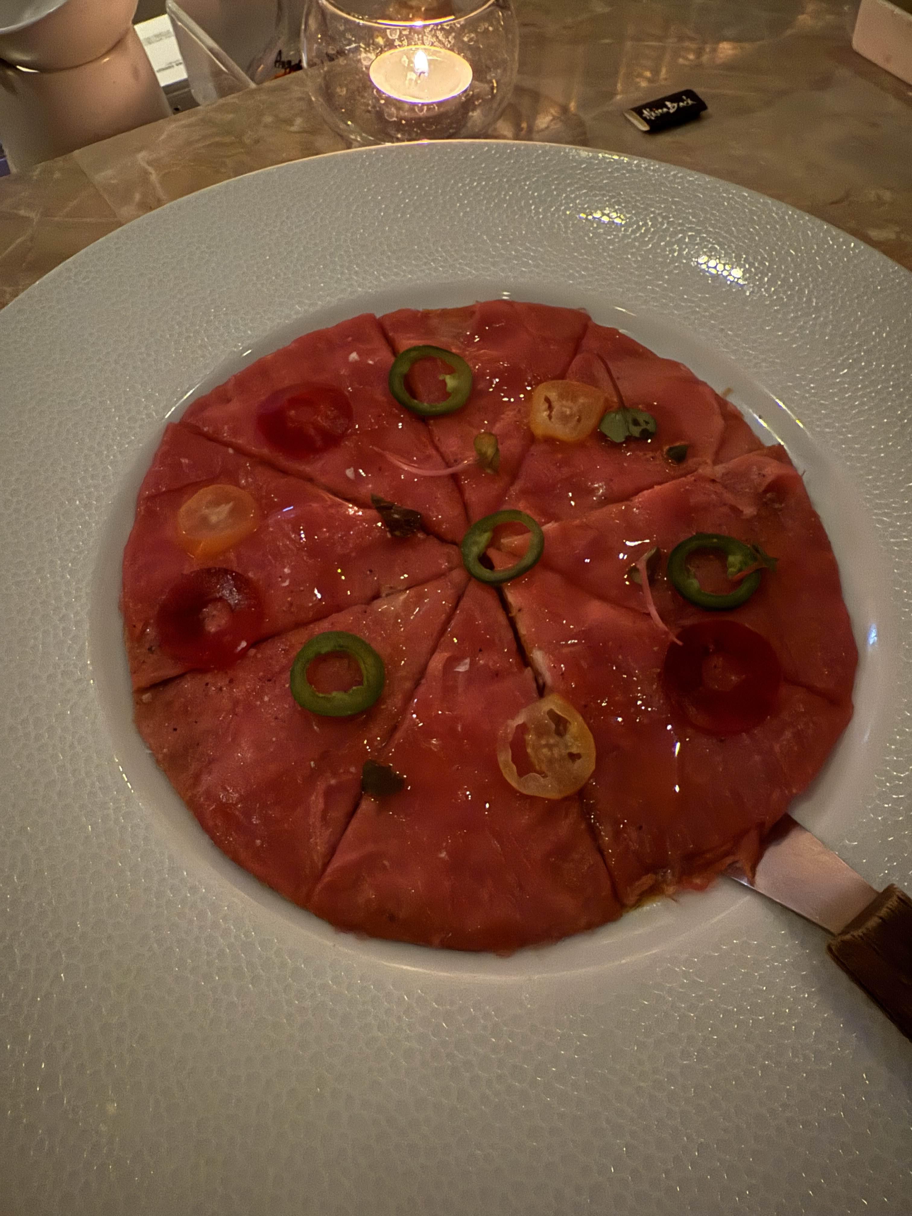 참치피자가 몰디브에서 먹었던 참치타코 맛과 비슷했지만,