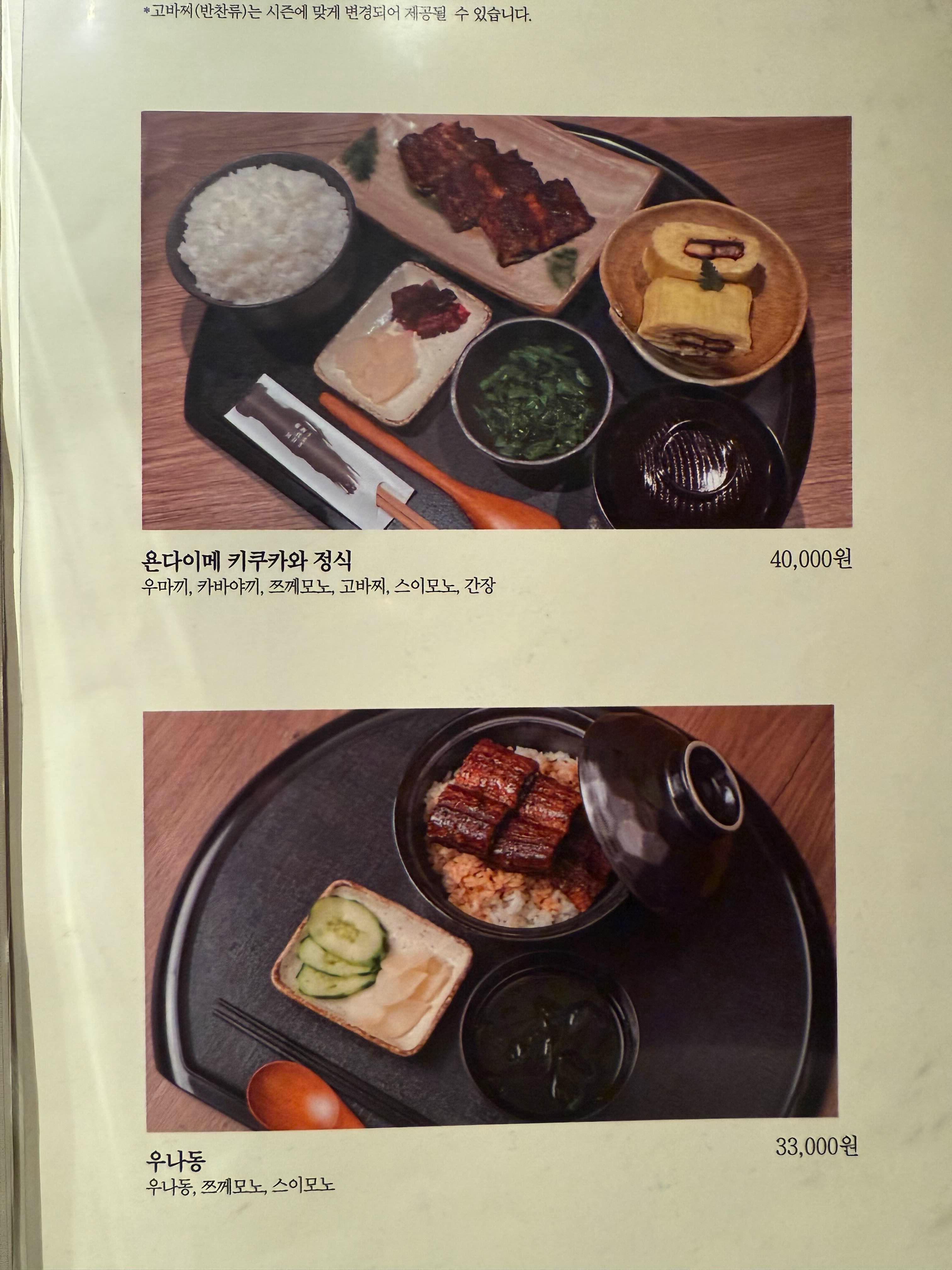 그리고 장어 양이 적은 욘다이메 키쿠카와 정식과 우나동도 있다.
