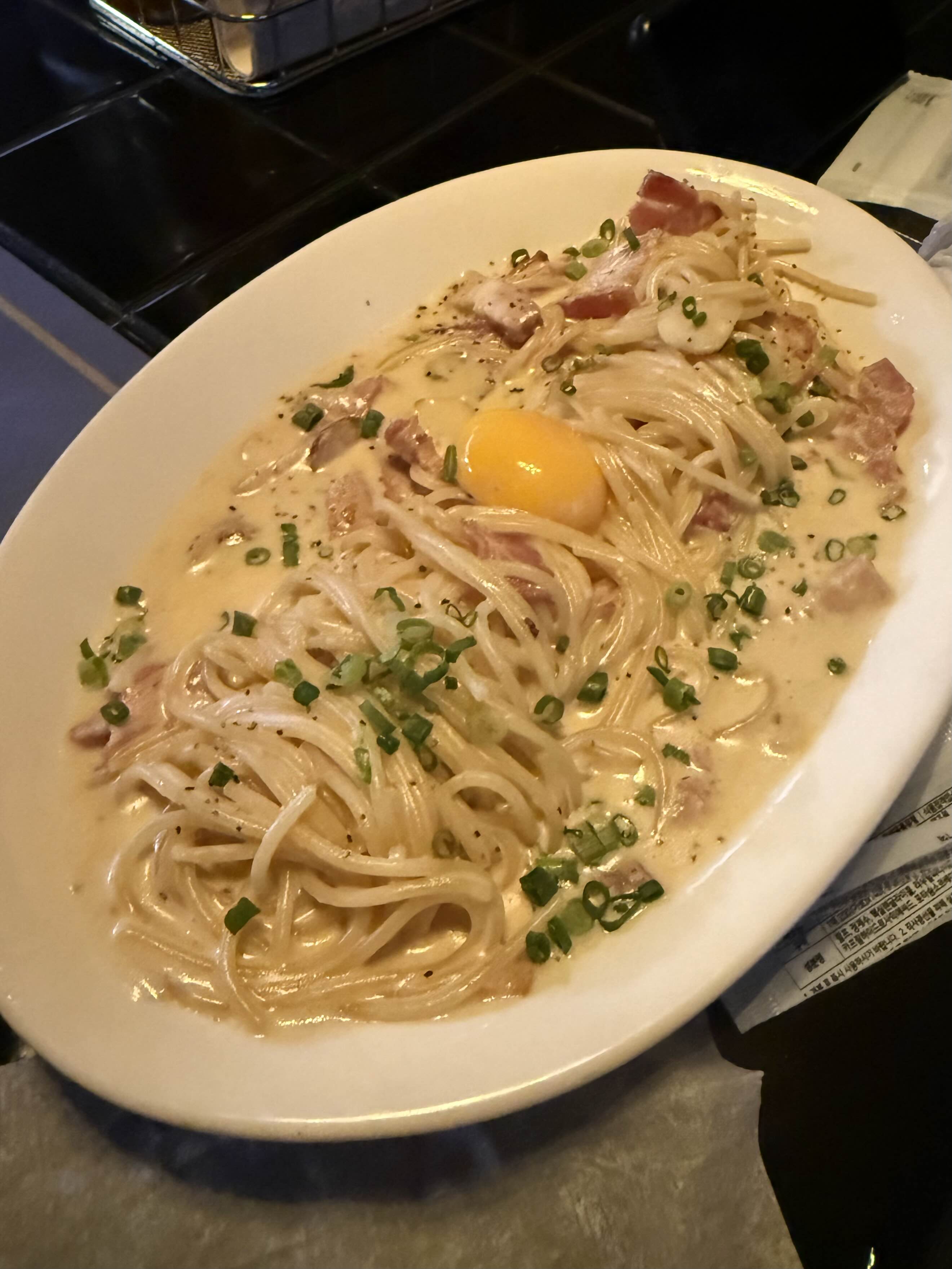 베이컨이 들어간 까르보나라에요!