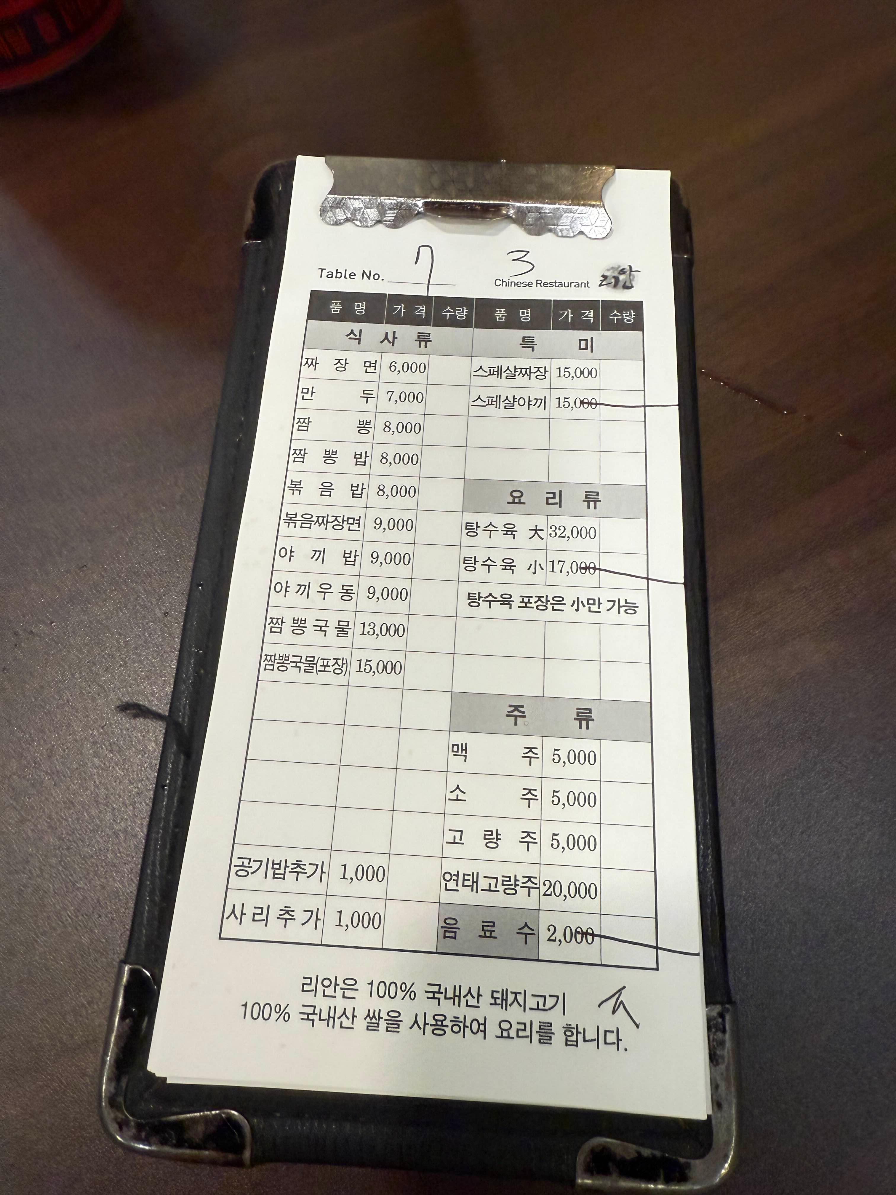 제일 유명한 탕수육과 스페셜 야끼우동을 주문했어요!
