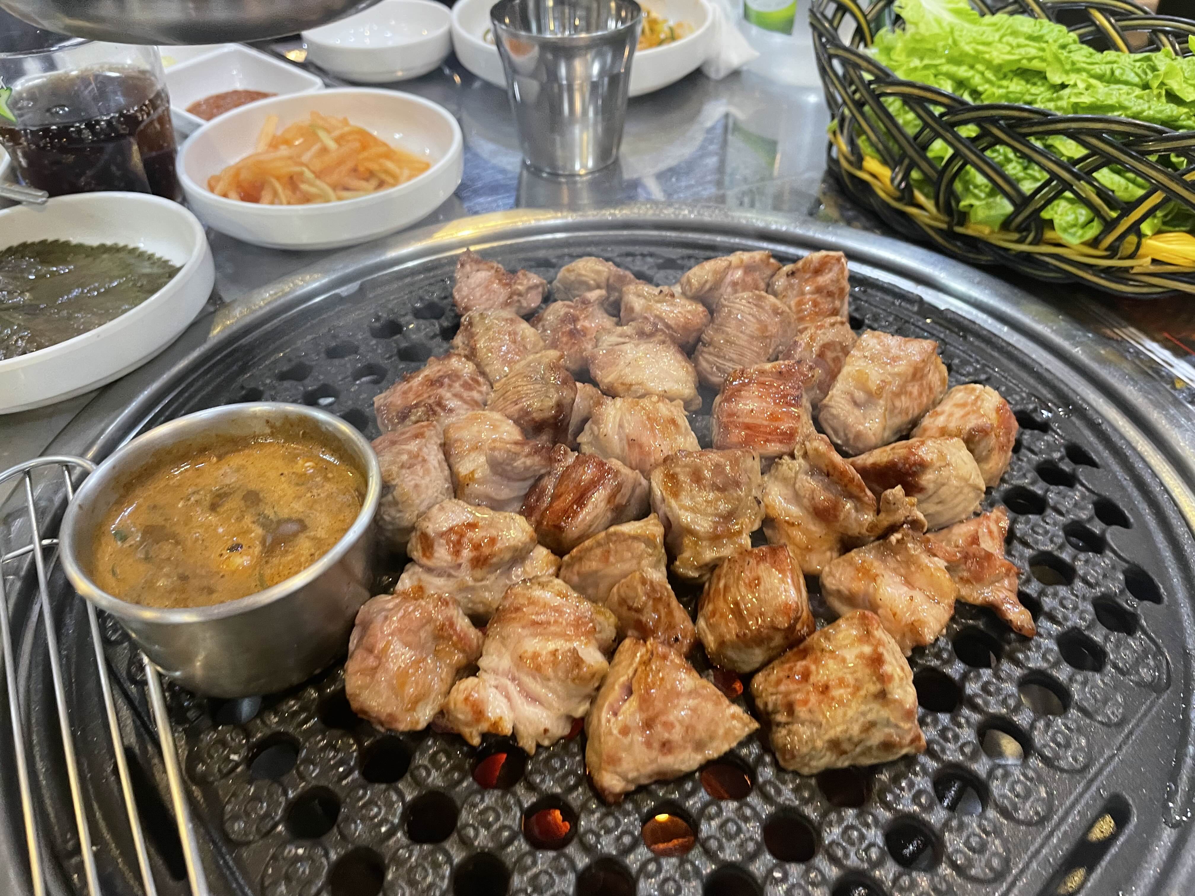 웅담식당위치 : 제주 서귀포시 중앙로59번길 5 웅담식당운영시간 : 15시 ~ 22시매주 일요일 휴무식당 왼쪽에 주차공간 있음 제주도 여행 계획 하면서 맛집 알아보는중에우연히 쯔양이 다녀온 제주 오겹살 영상을 봤어요!몇년전 제주여행할때 올레시장 가면서 이쪽을 지나갔었는데,사람이 엄청 많아서 궁금했었던 식당이 있었거든요?거기가 바로 웅담식당이었더라고요~ㅎㅎ그래서 바~로! 제주 먹킷리스트에 넣었답니다 ㅋㅋㅋ맛집답게 매장 한쪽 벽을 가득 채운 싸인들과고기도 여러 부위 팔지 않고 오겹살 한 부위만 판매합니다!!(찐 맛집 느낌ㅎㅎㅎ)저희는 둘이서 제주산 오겹살 3인분이랑 볶음밥 주문했어요~~기본 반찬으로는 '배추된장국, 두부, 기름장, 쌈장, 양파장아찌, 고추, 양파, 마늘, 상추'가 나와요.무엇보다 오겹살이 나..